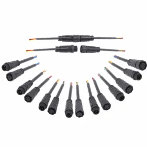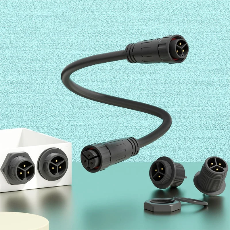 M12-4-Pin Nut-Locked Male-Female IP68 Waterproof Circular Connector Cable Assembly, PVC Cable for LED Lighting