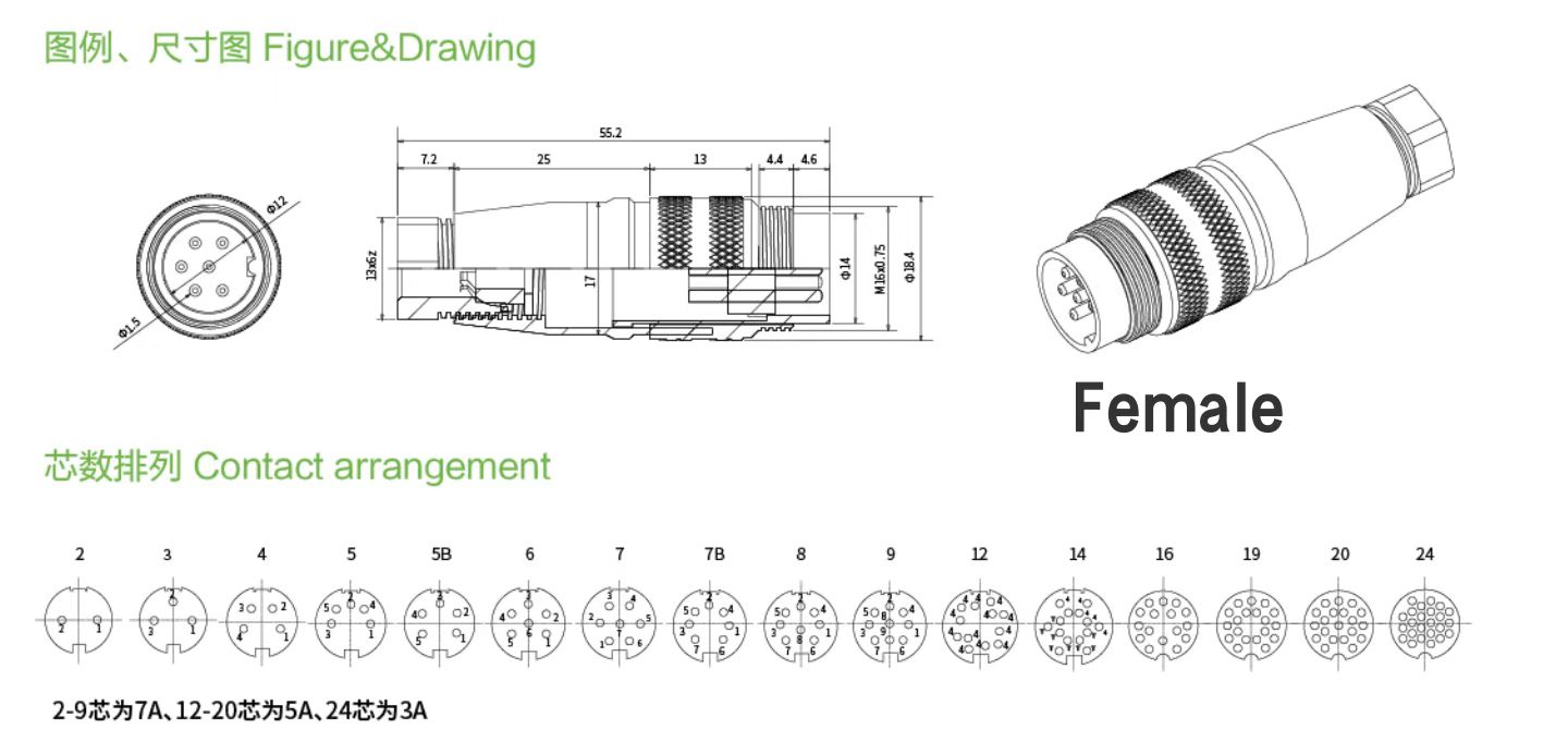 M16 aviation plug 3P4P5P6P7P8P circular connector C091 male female connector J09 waterproof female